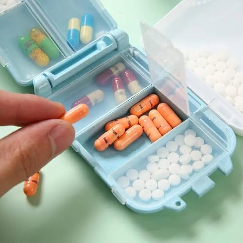 𝟒 𝐒𝐞𝐩𝐚𝐫𝐚𝐭𝐞 𝐂𝐨𝐦𝐩𝐚𝐫𝐭𝐦𝐞𝐧𝐭𝐬 𝐟𝐨𝐫 𝐄𝐚𝐬𝐲 𝐎𝐫𝐠𝐚𝐧𝐢𝐳𝐚𝐭𝐢𝐨𝐧 :- Features four individual sections to store and separate your tablets, capsules, vitamins, or small supplements, preventing mix-ups and keeping your doses well-organized.