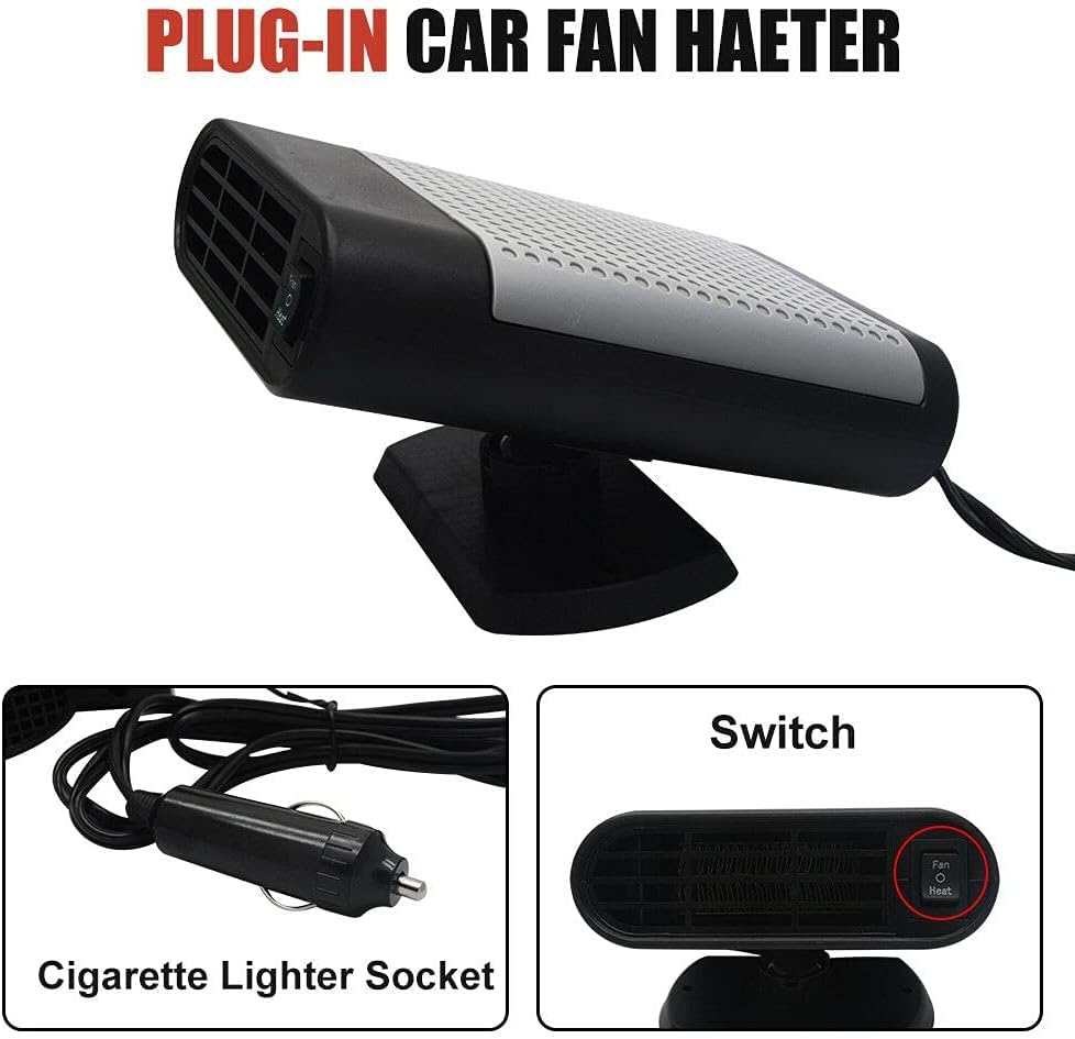 Easy to use, Just plug it into your cigarette lighter socket.With a holder and 3 vents, warm your car interior space and defrost quickly.With a high temperature radiating vent, warm within 30s, easy and convenient to use.