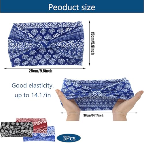 Versatile Headbands: Set of 3 stylish hair bands for women designed for various activities; Suitable for gym workouts, casual outings, and special occasions; Each headband features a unique bohemian-inspired pattern for a fashionable look