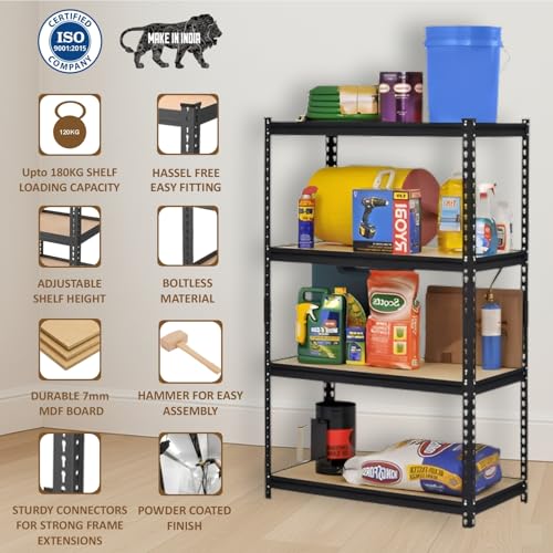 𝐒𝐩𝐚𝐜𝐞-𝐄𝐟𝐟𝐢𝐜𝐢𝐞𝐧𝐭 𝐃𝐞𝐬𝐢𝐠𝐧: This boltless shelf measures 61L x 20W x 152H Centimeters. Foldable metal racks provide practical storage solutions by easily collapsing when not in use, saving valuable space in garages, warehouses, or homes.