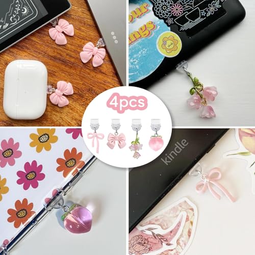 4Pcs Pink Anti Dust Plug Type C, Dust Cover Charm for USB C Port, Decorative Dust Plug for Device Protection, Cute Gift for Young Women Premium Protection: These 4pcs pink anti dust plug type c effectively protect your device’s charging port ; The snug fit ensures the dust cover stays securely in place, maintaining port cleanliness Charming Design: Featuring a delicate pink hue, these type c dust plug charms add a playful touch to your gadgets; suitable for personalizing smartphones, tablets, and other USB C devices Universal Compatibility: Designed to fit most type c dust plug ports, these usb c dust plugs are versatile accessories for various electronics; suitable for daily use with phones, laptops, and gaming consoles convenient to Use: Simply insert the dust plug charm into your device’s USB C port for instant protection; The convenientweight design doesn’t interfere with regular charging or data transfer activities Thoughtful Gift: Packaged as a set of four, these anti dust plug type c make charming gifts for tech-savvy young women; suitable for birthdays, holidays, or as cute stuffers for device lovers