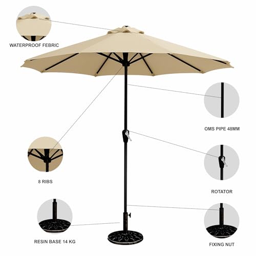 LARGE 9FT CANOPY – Wide coverage provides excellent shade for gardens, balconies, terraces, rooftops, and poolside lounging.