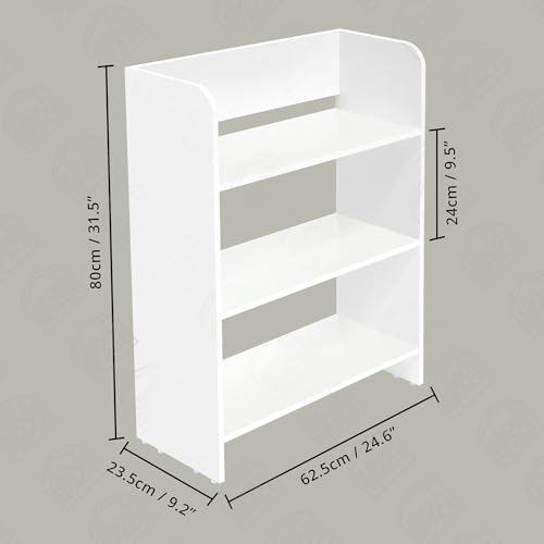 MATERIAL & DIMENSION: The kids book shelf is made of engineered wood for stability & durability with foot pad to avoid scratches and wobbling. The book rack for study room measures L 62.5 x B 23.5 x H 80 cm (L 2 x B 0.8 x H 2.5 ft).