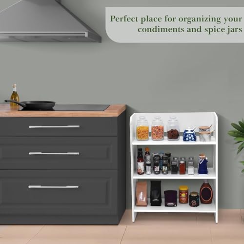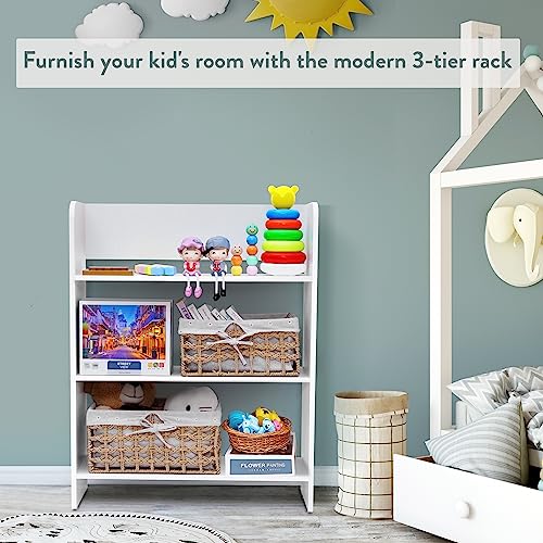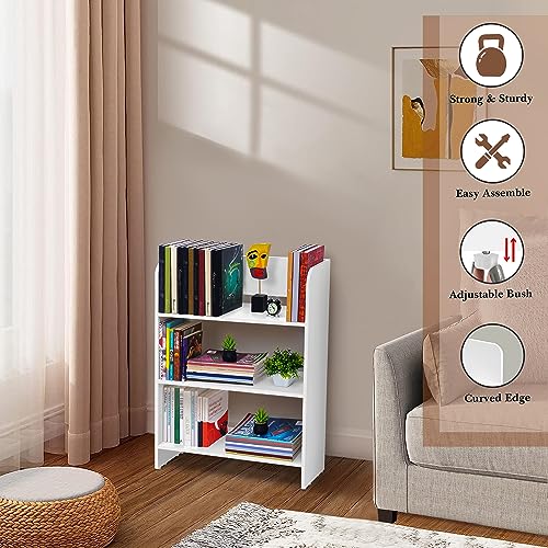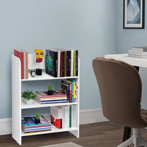 SPACE SAVING: This white finish display unit for home features 3 open steps display which makes this library book shelf wooden a perfect place for your favourite books, family photos, magazines, book holder, book stand for table, book light, bookmark, and decorative items.