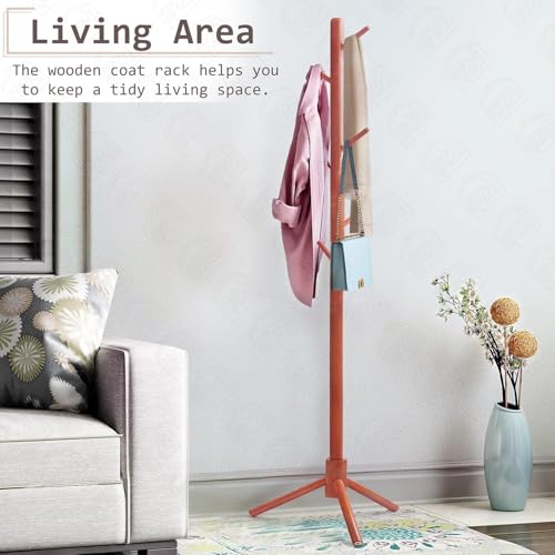 UNIQUE DESIGN: The hanging clothes stand design has rounded hooks for hand and cloth safety, a wood pole, and a sturdy triangular base, giving your home a classy look. The cloth stand for room can be kept in any narrow space according to your convenience.