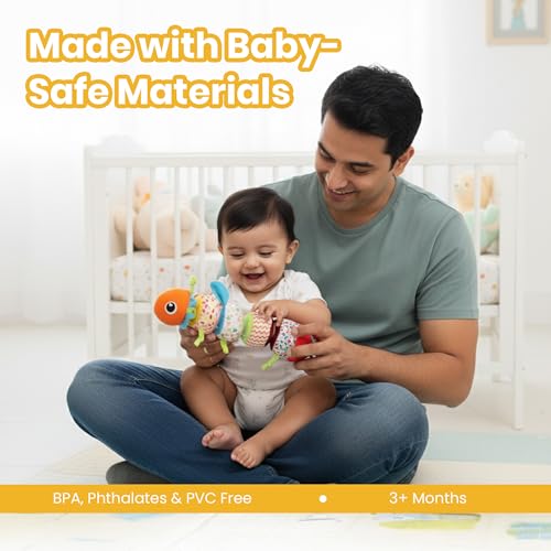 ENCOURAGES DEVELOPMENT Encourages sensory exploration, hand-eye coordination, and motor skills in babies that are aged 3+ months.