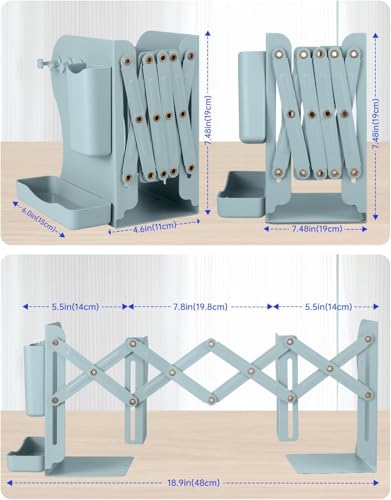 【Expandable & Adjustable】Book ends for shelves expandable range 4″-19″! The flexible space allows the bookends to meet different needs. The silicone sheet on the junction keeps the bookends more flexible.