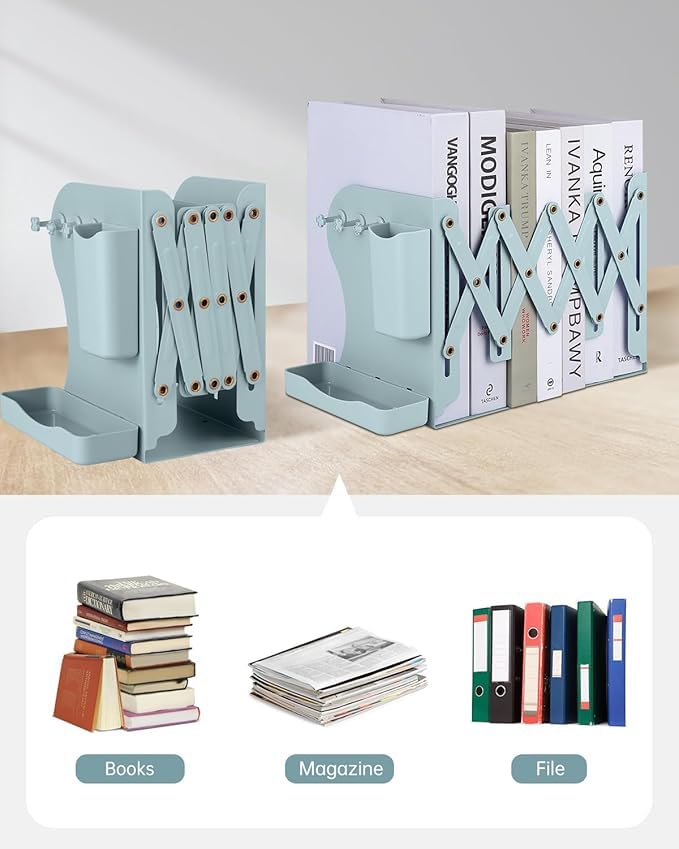 【Multifunctional Organizer】Ideal book organizer for home, school, office, desk, and shelves. Except for books, bookends can also be used to hold up Notebooks, magazines, games, DVDs, CDs, papers, albums, etc.