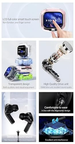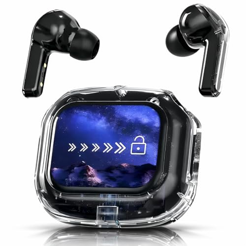 {Smart Case for seamless experience}: Control the earbuds’ settings, manage playback, control your audio setting and battery level and set your alarm without taking out your phone, through the screen of the charging case. Enjoy a truly seamless experience thanks to the VEHOP AIRMAX unique smart charging case without using your phone.