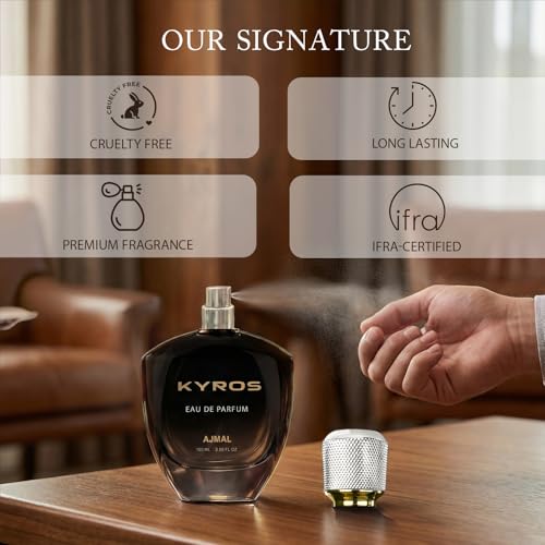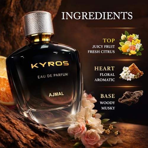 GIFTS FOR HIM & HER: Encased in a 100ml bottle, Ajmal Kyros is a versatile perfume gift for men and women who enjoy oriental-woody scents.