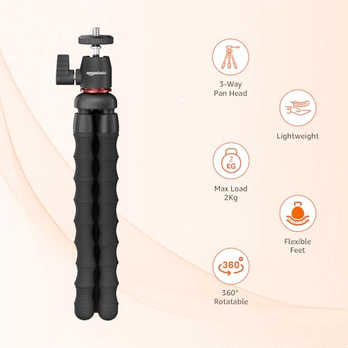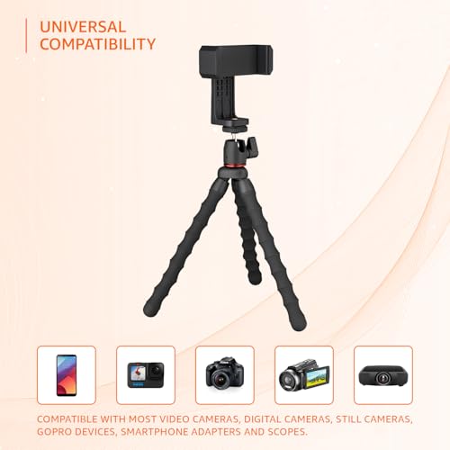Sturdy & Stable: Crafted from High-quality rubber, this tripod offers sturdiness and stability with bendable legs that can be wrapped around objects or adjusted to various angles, ensuring a firm hold on uneven surfaces as well. Supports upto 2 kg.