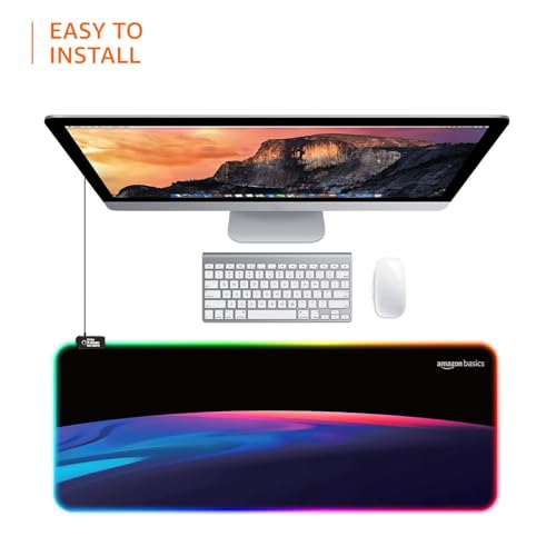 amazon basics RGB Light Gaming Mouse Pad Desk Mat for Computer Laptop | Stitched Embroidery Edges | Non-Slip Rubber Base | Extended Keyboard Mouse Pad for Office & Home (795mm x 298mm x 3.45mm)