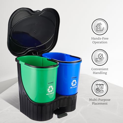 Dual Compartment System : Side-by-side compartments for dry and wet waste, making it suitable for narrow spaces and efficient waste segregation.