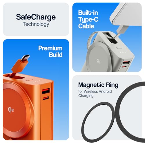 4-in-1 Charging: Enjoy versatility with Qi2 wireless charging, 1x USB-A port, 1x Type-C port, and a second Type-C port with built-in cable for on the go power ups! Charge all your devices without worrying about a different charger/powerbank.
