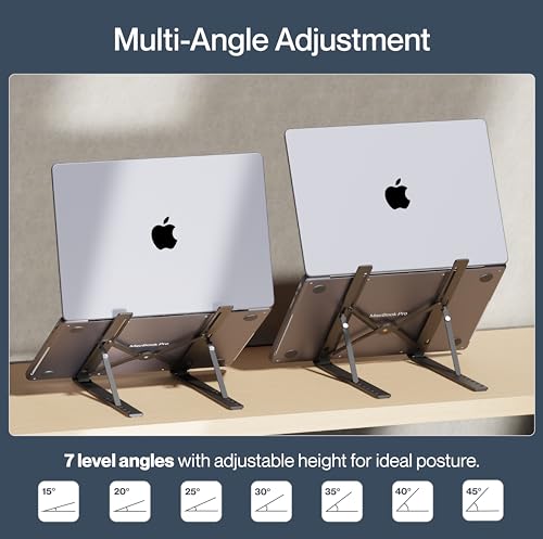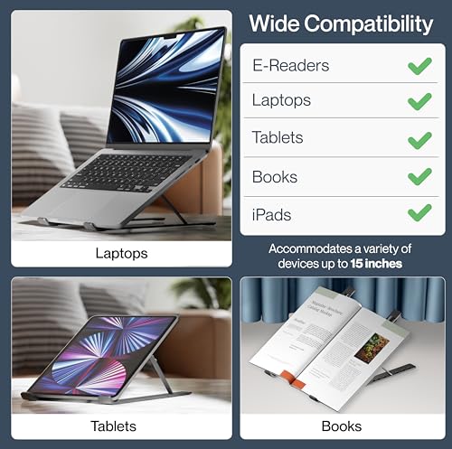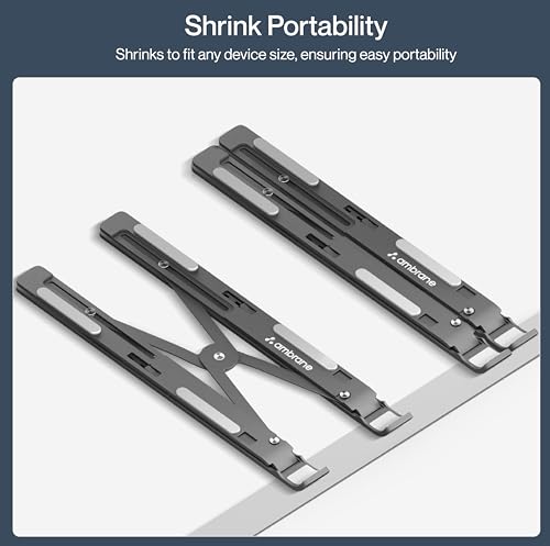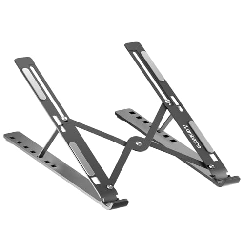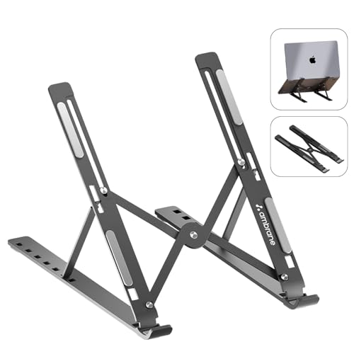 Ambrane Laptop stand with Metal Body, Portable & foldable Design & Height Adjustable OverHeating Protection for Dell, Mac Book Air/Pro, Lenovo, Acer, Hp, Asus & Other Laptop & tablets (Workpad, Black)