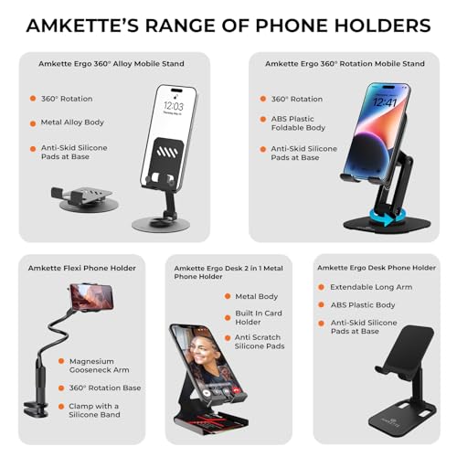 The Phone Clamp has a Smooth 360° Rotation for easy Portrait or Landscape viewing angles, has Anti Slip Silicone Pads for a Safe and Secure Grip, an additional Silicone Band that prevents the phone from slipping out & is made of high quality ABS Material for a durable and long lasting experience.