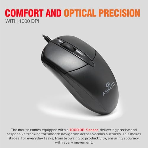 𝟭𝟬𝟬𝟬 𝗗𝗣𝗜 𝗦𝗲𝗻𝘀𝗼𝗿 & 𝗘𝗿𝗴𝗼𝗻𝗼𝗺𝗶𝗰 𝗗𝗲𝘀𝗶𝗴𝗻: Experience precise tracking with a 1000 DPI sensor and enjoy comfortable, fatigue-free use thanks to the mouse’s ergonomic design.