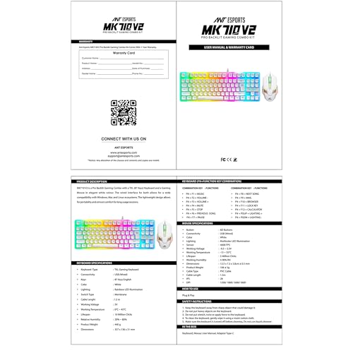 Classic Compact and Cool Design: MK710 V2 comes with 87 Keys, Multi-Colour backlight RGB TKL gaming keyboard has a medium size layout and it’s good for Home and Office use, without Numpad, more practical for Gamers and Office use, give more space to your desktop. The UV coated keycaps and injection laser carving ABS keycaps design, the letter of characters never fades. ABS material, portable film keys. No need to drive, plug and play directly.