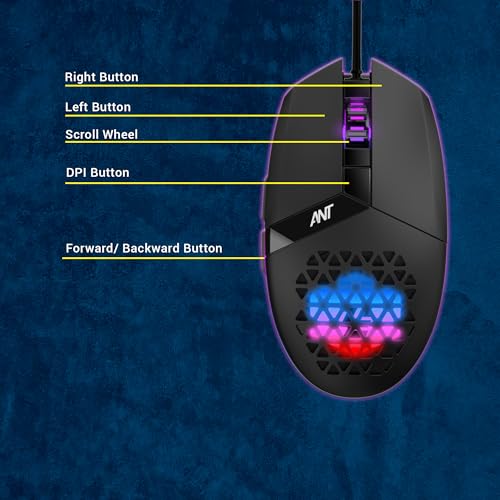 Ant G10 Gaming Mouse, Wired PC Mouse with RGB Backlit and Adjustable DPI, Ergonomic Office Laptop Mouse, Computer Gamer Mouse with 7 Responsive Buttons for Windows/Mac/Linux/Chrome