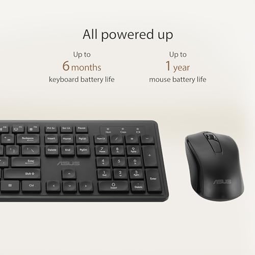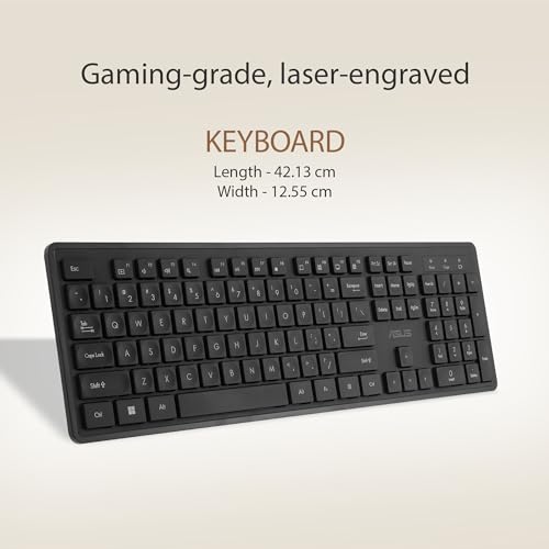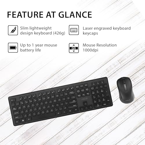 ASUS Wireless Keyboard and Mouse Set CW101, Upto 1000 Adjustable DPI,2.4 GHz Nano Receiver, Gaming-Grade, Laser-Engraved keycaps, Near-Silent Operation, Compact & Light Weight Design (Black)