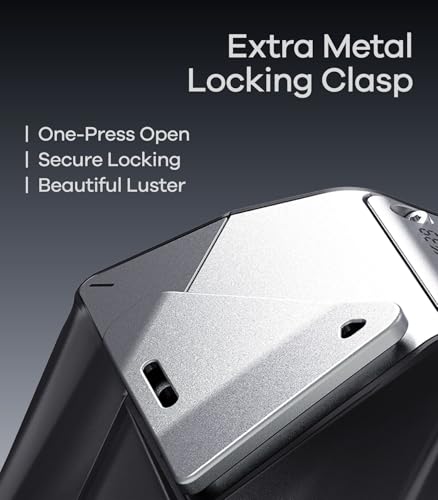 Complex and perfect:The locking clasp is made of alloy, and the cold metallic texture is mesmerizing. The main body of the case is made of soft TPU, while the faceplate and button positions are made of PC