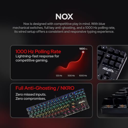 High-Speed Wired Connectivity with Braided Cable and 1000Hz Polling Rate: Enjoy stable, lag-free performance through USB wired connection. With a durable 1.5M braided cable and a high 1000Hz polling rate, the NOX keyboard ensures ultra-responsive input and long-lasting durability.