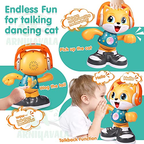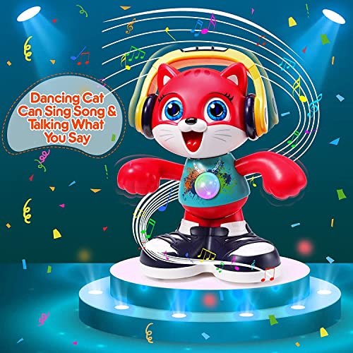 🎉 BEST MUSICAL DANCING TOYS: Dancing cat with groovy DANCE, PLAY MUSIC and TALKBACK function! 2 modes for fun dancing: “Dance on the spot” in STOP MODE & “Walk and dance” in GO MODE, teach baby basic dance moves, swing arms, wiggle hips & shake head in time to the music. Built-in microphone, kids can imitate sounds & support language development! Just for you!