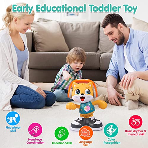 🌈A MUST FOR SKILL DEVELOPMENT: Vivid dancing cat infant toys 12 18 36 months boy girl, Best early educational toys for toddlers. Encourage to CRAWL WALK & DANCE, promote sense & perception, simulate fine motor skills, sence of direction, hand-eye & limb coordination & language skills. Also develop singing, learn music & rhythm. Let’s try our learning toys for 1 2 3 years old boys girls to develop toddler essential skills!