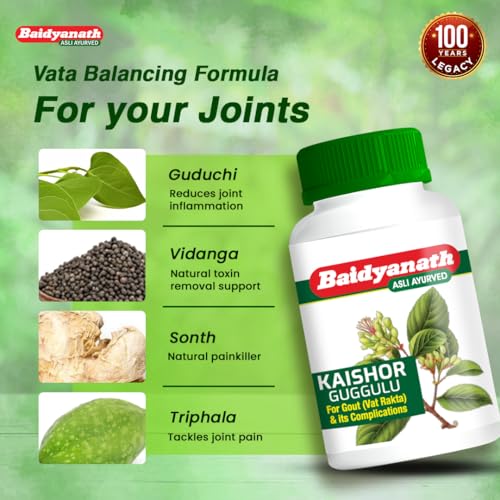 Baidyanath Kaishor Guggulu is an Ayurvedic formulation made with a combination of herbs, including Sudh Guggulu, Triphala, Guduchi, and other botanical extracts. This herbal blend follows traditional preparation methods and is manufactured in a GMP-certified facility. With a focus on quality, Baidyanath ensures that its formulations are made using time-honored Ayurvedic principles. It is commonly used as part of a daily wellness routine. For best results, take as directed by a healthcare professional.