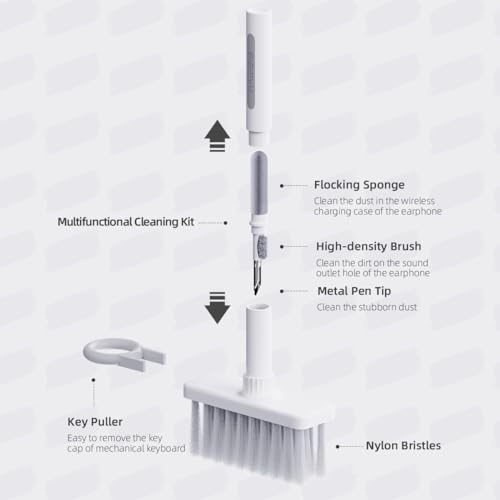 5 in1 Multipurpose Brush | The kit features a brush which is a great airpod cleaner and earphone cleaner and is perfect for cleaning airpod cases and cleaning speakers. That’s not all. The brush is the ideal keyboard cleaning kit and includes a keyboard duster and key-puller for deep cleaning keyboards