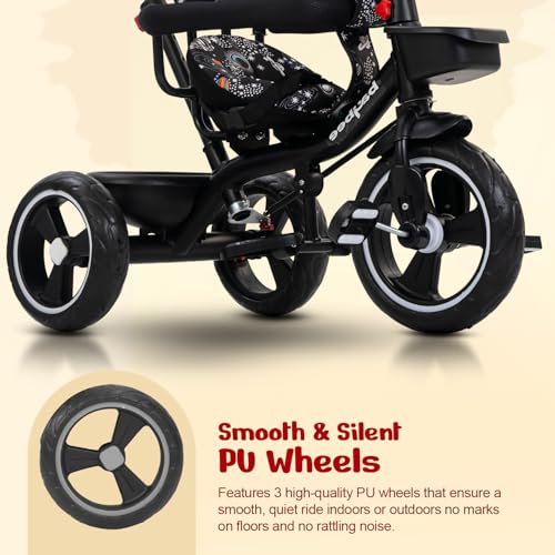 Smooth PU Wheels for Any Surface: The Tricycle wheels ensure bump-free rides on this kids cycle, offering stability and balance for boys and girls learning to pedal.