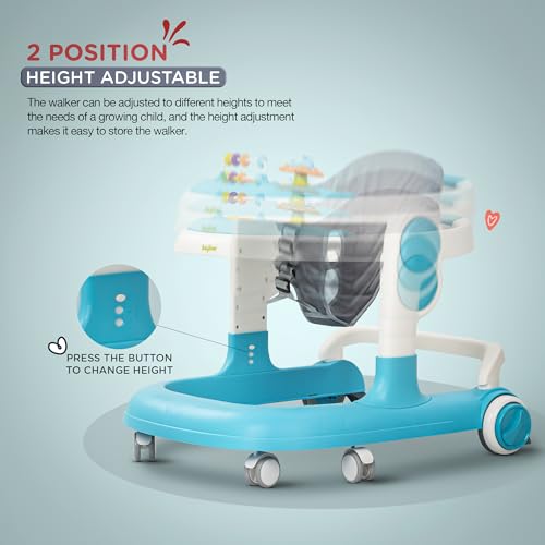 Safety First Design: Built with a sturdy frame and an extra-wide base for maximum stability, this baby walker ensures your little one stays secure during playtime and exploration. The wheel locks add an extra layer of safety for controlled movement.