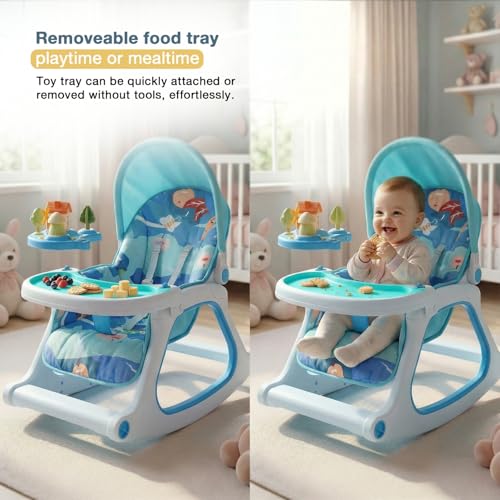Removable Food & Toy Tray – Playtime or Mealtime Easily attach or remove the tray without tools; ideal for use as a baby feeding chair during meals or as an activity tray during playtime.