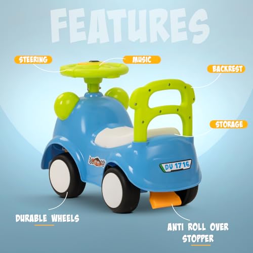 Push Rideons with Storage: This kids car includes a spacious under-seat storage to carry toys or snacks, making every ride on car for baby fun and functional.