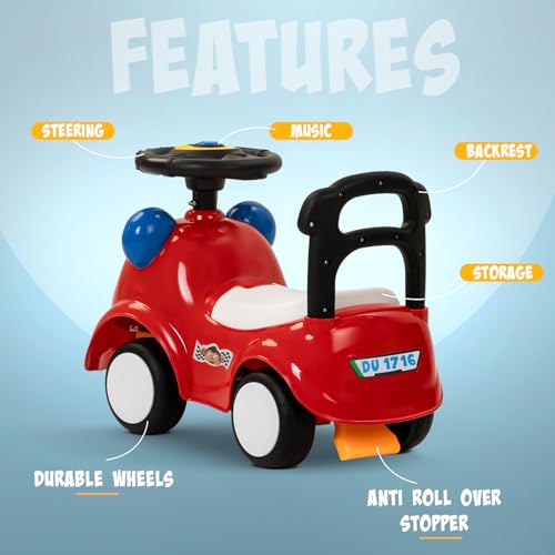 Push Rideons with Storage: This kids car includes a spacious under-seat storage to carry toys or snacks, making every ride on car for baby fun and functional.