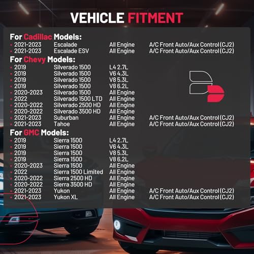 【Fitment information】:Compatible with Cadillac 2021-2023 Escalade Escalade ESV; Compatible with Chevy 2019-2023 Silverado 1500, 2022 Silverado 1500 LTD, 2020-2022 Silverado 2500 HD 3500 HD, 2021-2023 Suburban Tahoe; Compatible with GMC 2019-2023 Sierra 1500, 2022 Sierra 1500 Limited, 2020-2022 Sierra 2500 HD Sierra 3500 HD, 2021-2023 Yukon Yukon XL.Please confirm the compatibility according to the year/make/model of your vehicle and the OE number of the replaceable part.