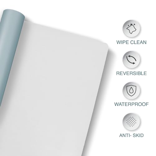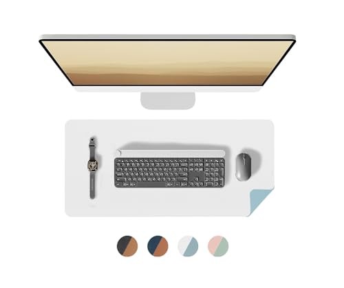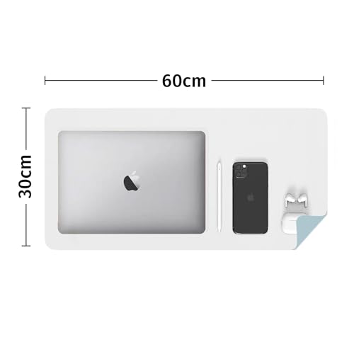 Bellblock Large Extended Desk Mat/Mouse Pad/Gaming Mouse Pad | Vegan PU Leather | Anti-Skid, Non-Skid, Reversible Splash-Proof | White & Sky Blue | 60 x 30 cm (Pack of 1)