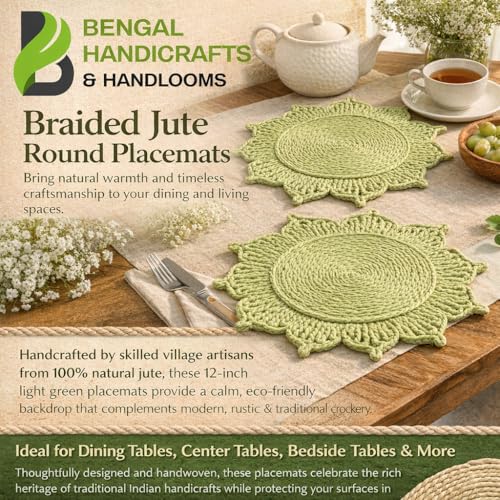 Elegant Round Design – 12 Inch Size: Perfectly sized round placemats add a warm, earthy charm to dining tables, center tables, bedside tables, shelves, and coffee tables.
