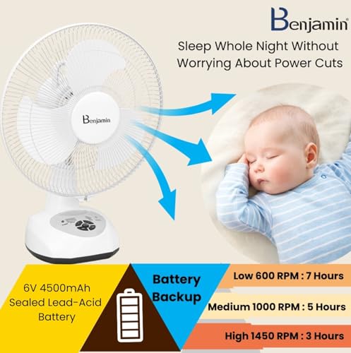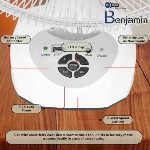 Works with and without electric supply Best in class backup 110 degree oscillation 1 year pick and drop home service warranty, Battery and accessories warranty 6 months.
