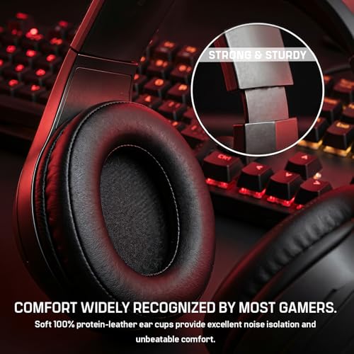 Comfort Built for Long Gaming Hours: Soft 100% protein-leather ear cushions with breathable padding and an adjustable reinforced headband for fatigue-free comfort.