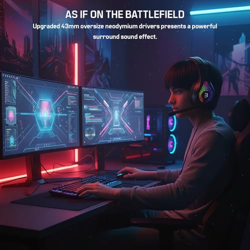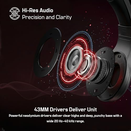 Immersive Hi-Res Gaming Audio: Powered by upgraded 43mm neodymium drivers delivering crystal-clear highs, detailed mids, and deep punchy bass for true battlefield-level surround sound.