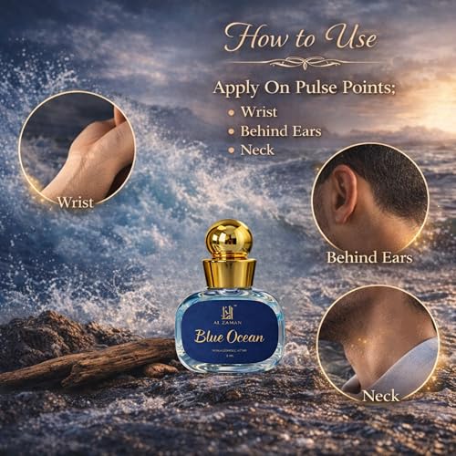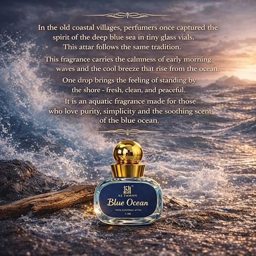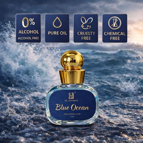 NON-ALCOHOLIC ATTAR: Blue Ocean is a premium alcohol-free attar oil that provides a fresh, aquatic fragrance experience suitable for both men and women