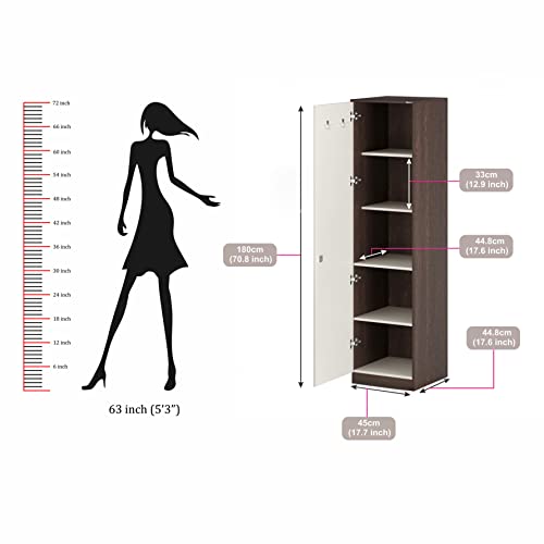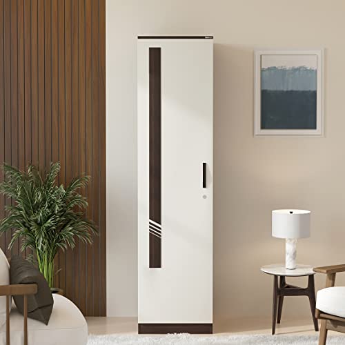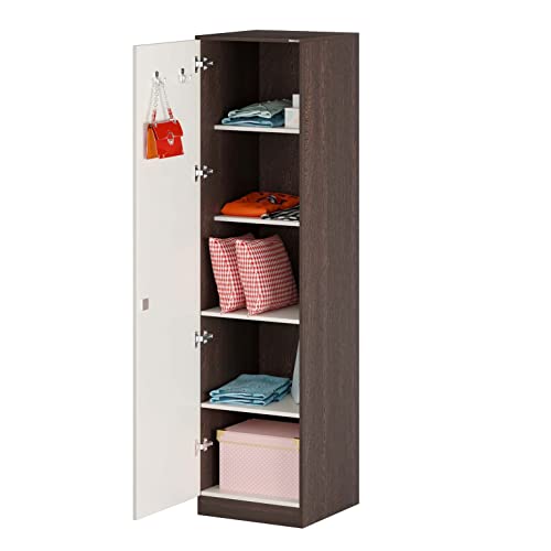BLUEWUD Andrie Engineered Wood Single Door Wardrobe/Clothes Storage Rack Organizer Almirah Cupboard with Shelves for Bedroom Home Furniture (Wenge & White)