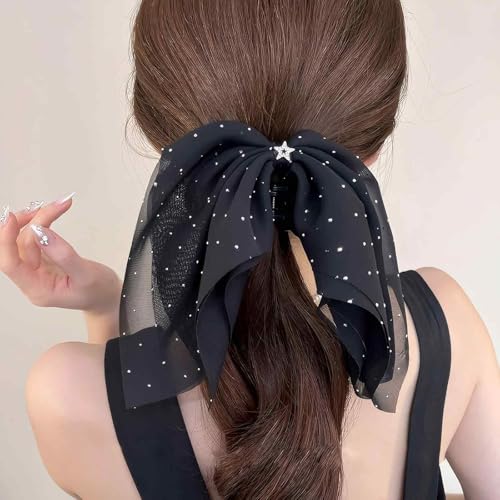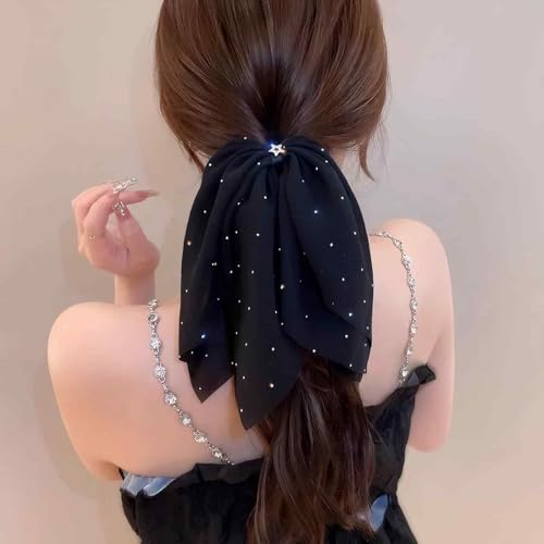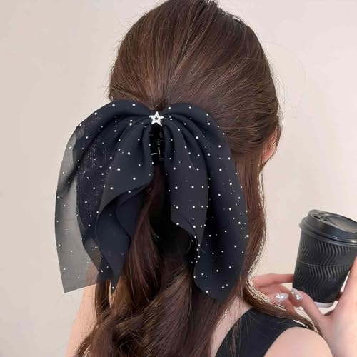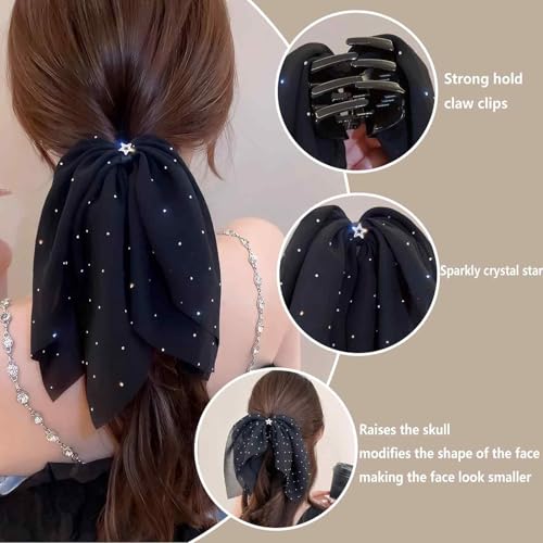 Elegant Bow Hair Clips: The black rhinestone bow hair clip adds a touch of elegance to any hairstyle; Perfect for enhancing your look during weddings, parties, or school events.
