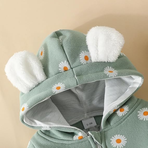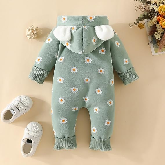 Material – Cotton Fleece , The Baby Costumes with Classic Flower Printed Hat are Crafted in soft fur material that has a napped finish on both sides, high absorbent and breathable, cozy feel of this baby Pyjamas to keep little baby warm and comfy all winter.