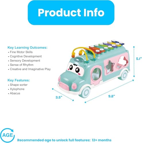 Interactive Learning Experience: This musical bus combines a xylophone, shape sorter, and push & go vehicle, providing endless hours of educational fun for your toddler.