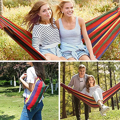 High Quality: The camping hammock is made of Soft Canvas Material, which is super soft and comfortable, and especially safe. It can accommodate 2 adults / or 1~4 children/or up to 450 lbs.