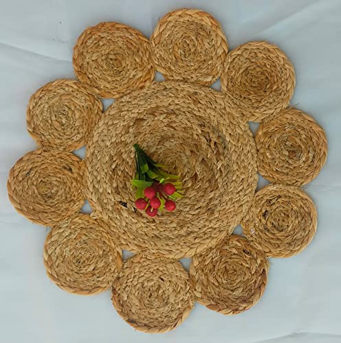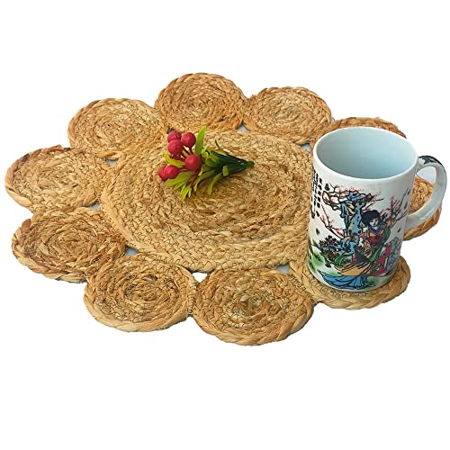 VERSATILE – Use it as decorative end table placemats or coffee mug cup coasters, drink coaster, or corner table showpiece placemat, coasters for coffee table, or dinning table placemats, big coasters for hot vessels, bed side table or corner table decorative mats under flower pots or arts. Package Contents jute coasters for dining table set of 1. Size: 23 cm(15 Inches). Shape: Circle.