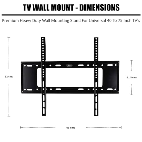 About : Caprigo Premium Heavy Duty Series Fixed TV Wall Mounting Bracket For 40 To 75 Inch TV’s (LED, QLED, OLED, HD, UHD & Smart TV’s)