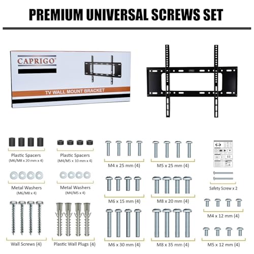 Easy & Quick Installation : Experience A Hassle-Free Setup With Our Simple And Quick 3-Step Installation Process. Each TV Wall Bracket Comes With An Easy-To-Read, Step-By-Step DIY Installation Manual For Effortless Mounting. A Best-In-Class Premium Universal Screw Set Is Included, Featuring A Wide Range Of High-Quality TV Mounting Screws To Ensure A Perfect Fit & Secure Installation